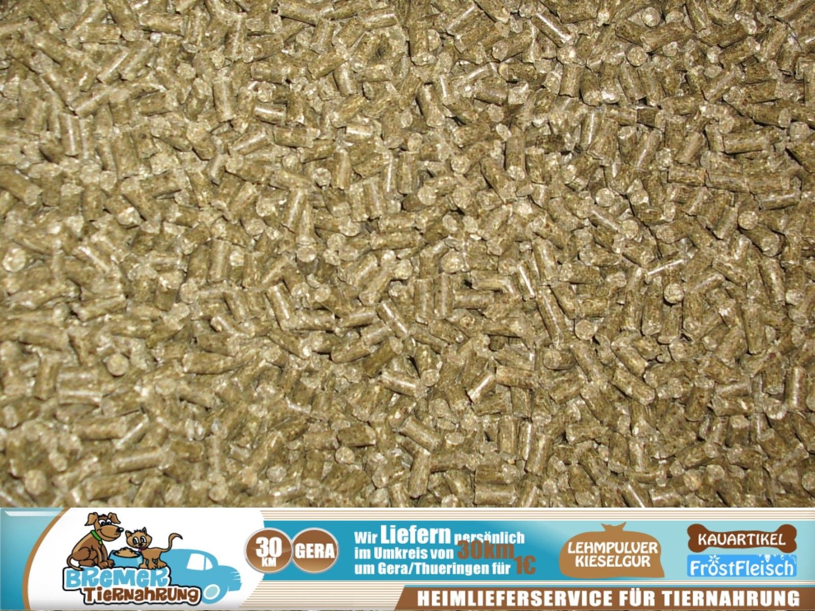 Hafer, Gerste, Luzerne/Grünmehl, Trockenschnitzel, Weizengriesskleie, Zuckerrübenmelasse, Calciumcarbonat, Rapssöl/Sojaöl