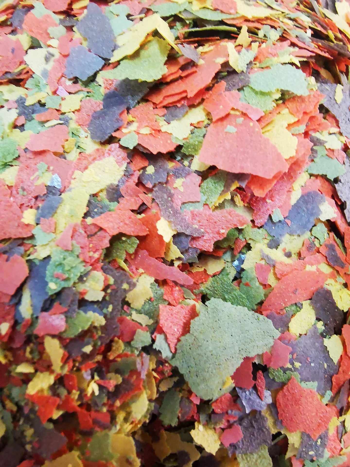 Teichflocke Zierfischflocke Multi Color ist ein 4 färbiger Flocken Mix als Hauptfutter für alle Gartenteichfische und Zierfische . Sie besteht aus allen wichtigen Komponenten und ist ideal für die Fütterung bei Teichen mit verschiedenen Fischgrößen und als Abwechslung zu Pellets.