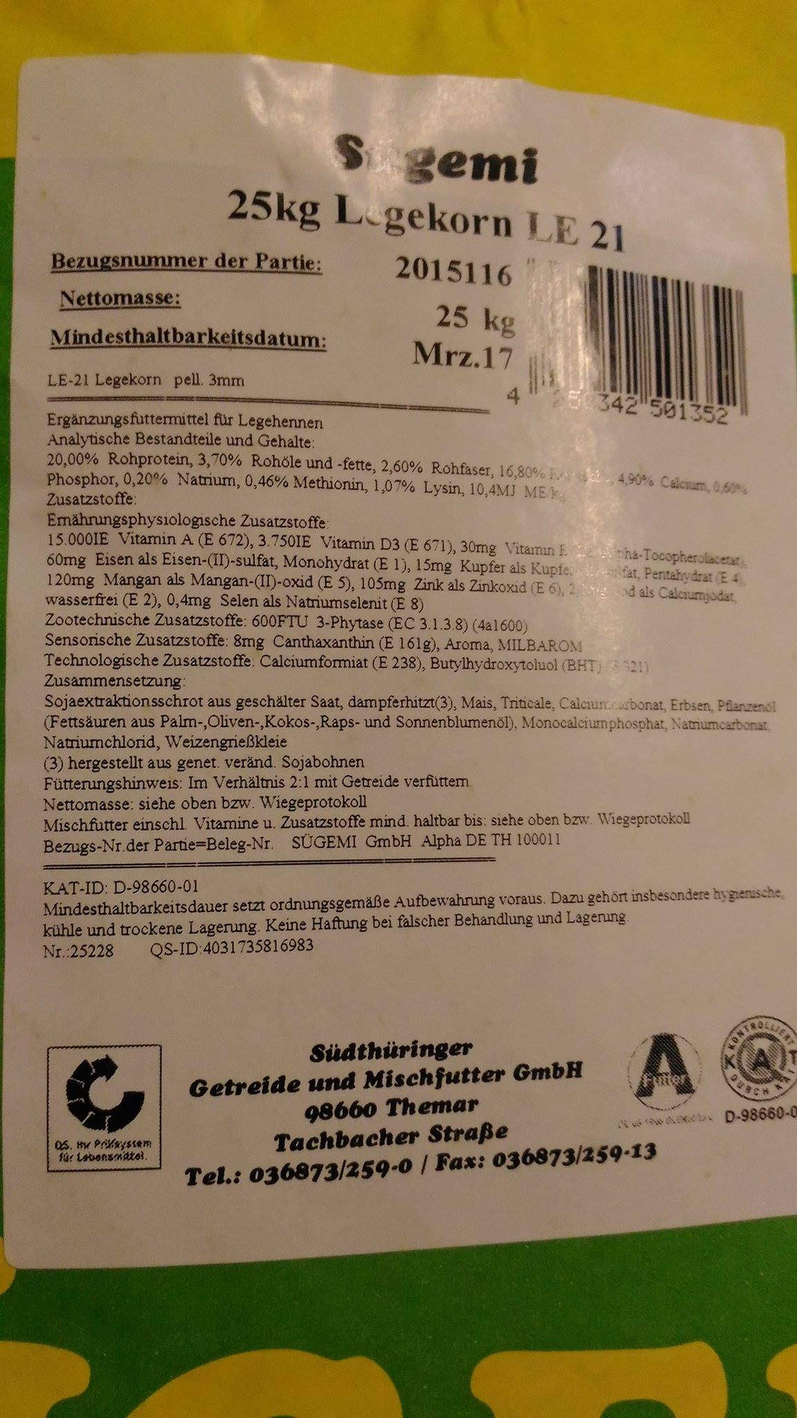 Im Verhältnis 2 : 1 mit Getreide verfüttern.