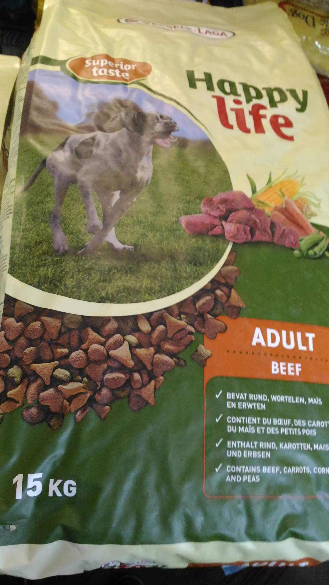 Happy life Adult mit Rind ist ein leckeres und abwechslungsreiches Futter mit Rind, das alle Nährstoffe für einen vitalen erwachsenen Hund enthält