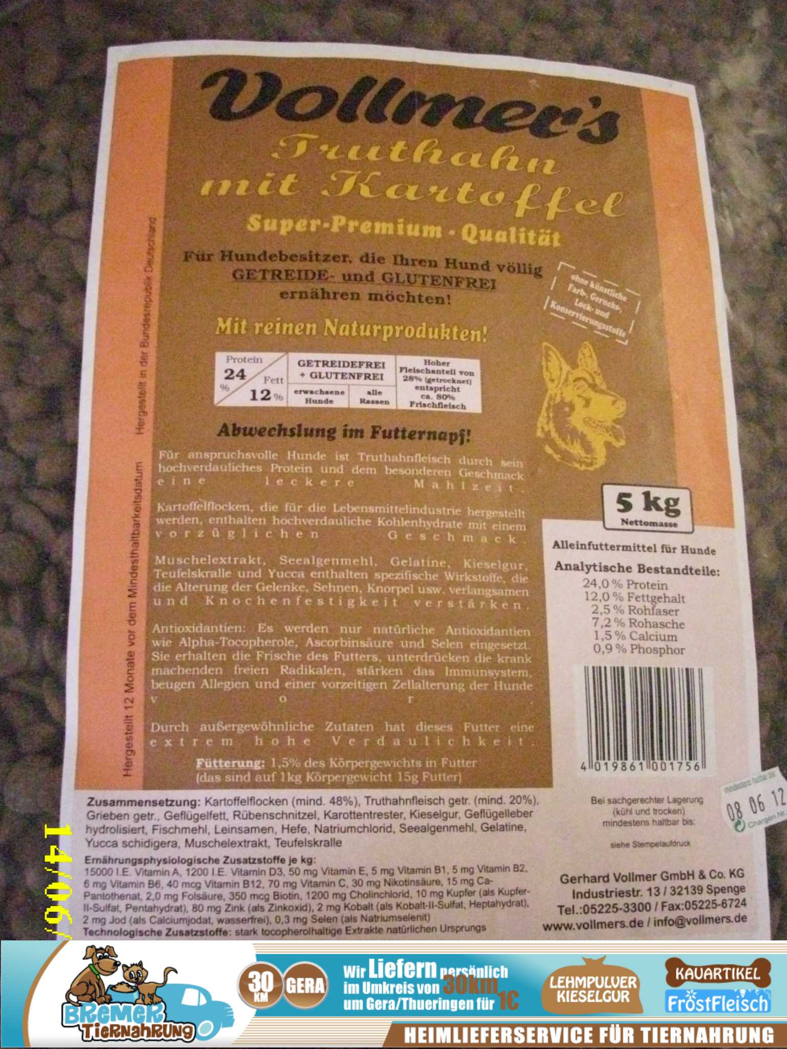 Vollmer's Truthahn mit Kartoffel kann feucht (mit etwas Wasser übergossen) oder trocken gefüttert werden.