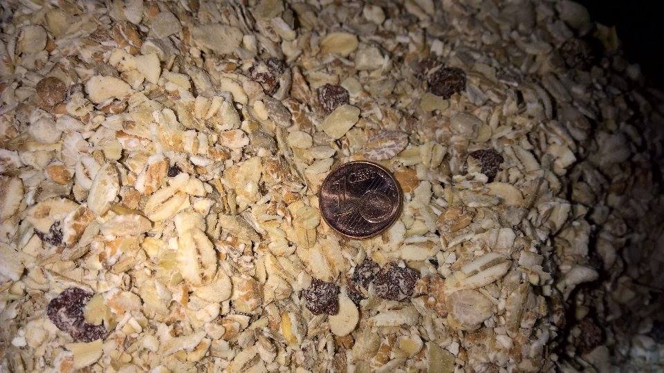 Hafer- Weizen- und Gersteflocken; Fett; Erdnüsse; gesch. Sonnenblumen; Rosinen