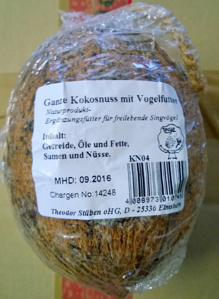 1 Stk ganze Kokosnuss für freilebende Singvögel
