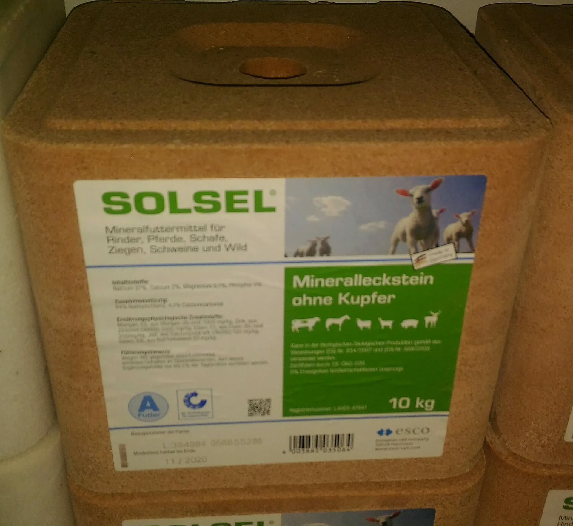 Bei der SOLSEL® Minerallecksteine ohne Kupfer Rezeptur wurde auf das Element Kupfer verzichtet, um Unverträglichkeiten für bestimmte Tierarten auszuschließen. Die Minerallecksteine ohne Kupfer wurden insbesondere für die Verfütterung an Schafe entwickelt. Sie sind jedoch auch für Rinder, Pferde, Ziegen, Schweine und Wild bestens geeignet.